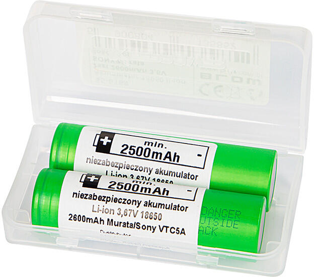 KÉT Murata/Sony VTC5A AKKUMULÁTOR + DOBOZ ERŐS AKKUMULÁTOR 18650 Li-ion 2600mAh 3,6V 2 DB MURATA SONY DOBOZ