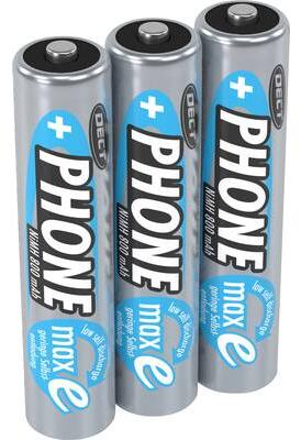 DECT maxE mikroakkuk 3 részes készletSpeciálisan a DECT telefonok különleges követelményeihez vannak tervezve. Minimális önkisülésNagy ciklusállóságGyorstölthetőSpeciáis an egy DECT telefon különleges követelményeihez tervezve és kialakítva Az akkuk igen csekély önkisüléssel rendelkeznek, ami az ideális előfeltétel a vezeték nélküli telefonokban való működéshez. A nagyon jó ciklusszilárdságnak köszönhetően a NiMH cellák max. 1000-szer újratölthetők. Nagy töltőárammal tölthetők, miáltal lehetséges a nagyon rövid töltési idő. Az akkuk -20 ... +50°C hőmérsékleten használhatók. A NiMH akkuk alapvetően minden olyan helyen felhasználhatók, ahol egyutas akkukat használnak. Ezzel pénzt takaríthat meg, és kíméli a környezetet is. Az önkisülése tízszer kisebb a normál NiMH akkukhoz képest. Egy év után még mindig a kiinduló kapacitás 80 %-a rendelkezésre áll. Ezt egy speciális leválasztó teszi lehetővé, amely a nem kívánt belső áramokat határozottan csökkenti. Mivel az akkuk feltöltve kerülnek forgalomba, azonnal üzembe helyezhetők. Műszaki adatok: Akku/elem típus: Mikroakku · Elem- és akkuméret: Mikro (AAA) · Elem-/akkutechnológia: NiMH · Feszültség: 1.2 V · Gyártói szám: DECT maxE HR03 · Hasonló típusú elemek- és akkuk: HR3, HR03, UO100557, DC2400, DC2400B4N, LR03, AAA, LR3, AM4M8A, AM4, S, MN2400,824, E92, LR03N, 24A, K3A, R3, R03,7526, UM4, Micro, V2500PX · Kapacitás (mAh, Ah): 800 mAh · Méret, magasság: 44.5 mm · Tartalom: 3 db · További műszaki adatok: Hőmérséklettartomány -20 ... + 50° C-ig · Átmérő: 10.5 mm · Újratölthető: Igen