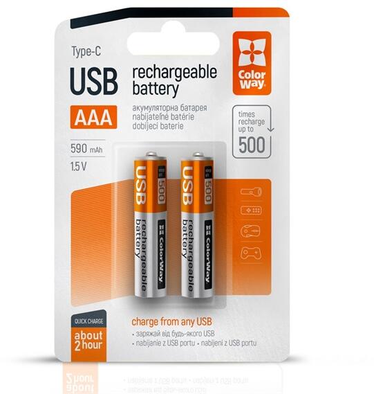 Rechargeable Battery ColorWay AA USB- 590 1.5 (Li-Polymer) (2pc. ) (CW-UBAAA-09)