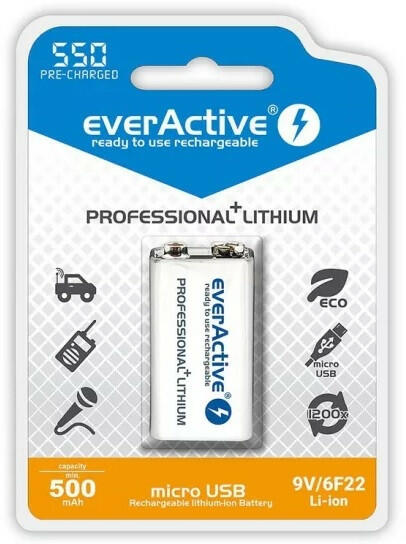 everActive 550mAh HR22 USB-C Lithium akkumulátor 9V tölthető elem (everActive-EVHR22-550)