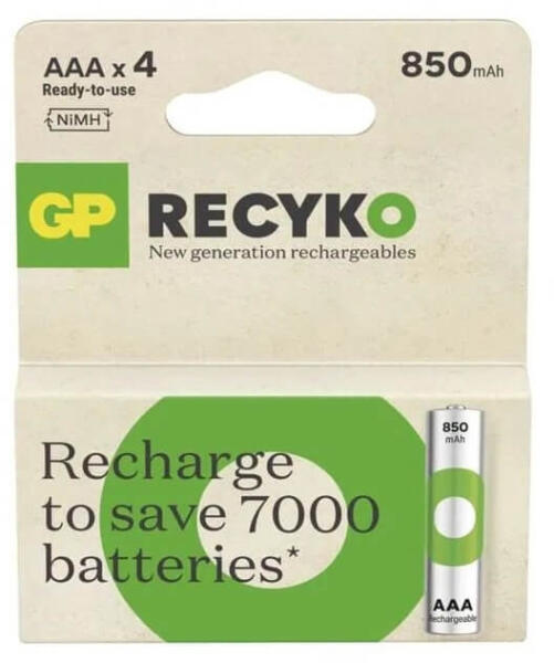 A GP AAA Recyko 850mAh NiMH akkumulátor forradalmasíthatja a mindennapi életünket: nemcsak pénzt takaríthatunk meg velük hosszú távon, de a környezetvédelemhez is jelentős mértékben hozzájárulhatunk. A csomagban található 4 db GP Recyko NiMH akkumulátor ideális választás lehet azok számára, akik gyakran használnak elemes eszközöket otthonukban.