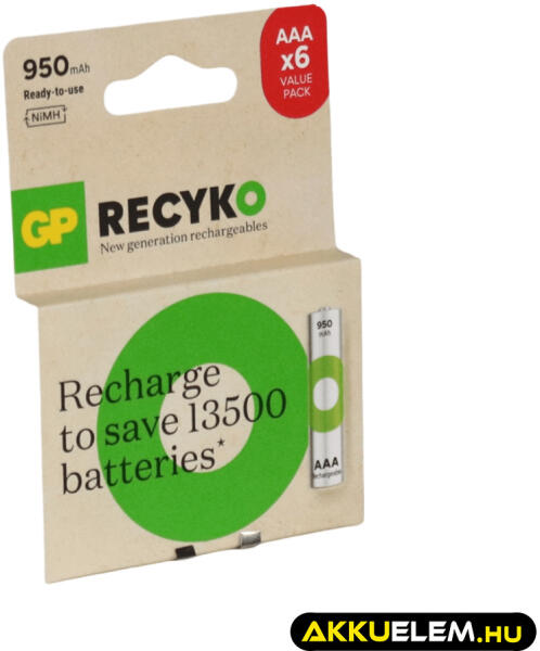GP Batteries GP ReCyko 1, 2V 950mAh AAA elemméretű akkumulátor 6db-os gazdaságos csomagban