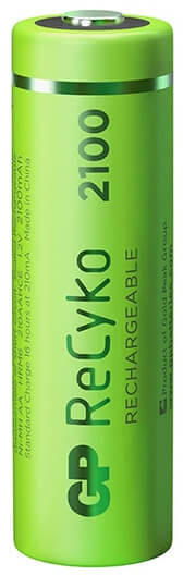 A ReCyko+ a GP saját technológiája, amely megnövelt élettartamot biztosít a Ni-MH akkumulátorok számára. AA (R6, LR6, ceruza) méretű tölthető akkumulátor, 2100mAh kapacitás, 1,2V feszültség.