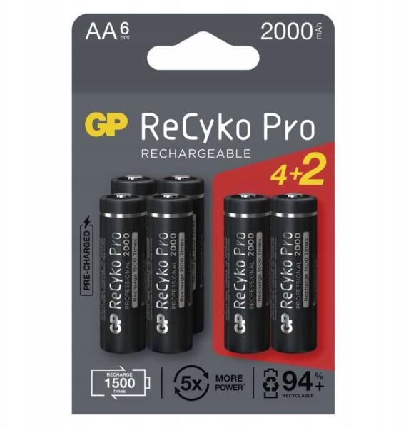 GP Batteries Gp Recyko Pro 2000, 6 db Aa újratölthető elem (1033226200)ALLEGRO