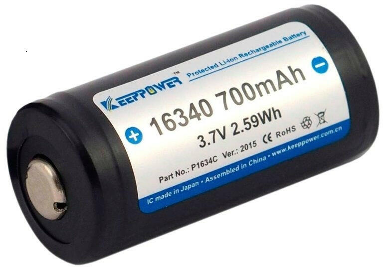 KeepPower P1634C KeepPower CR123 3, 7V 700mAh Li-ion akkumulátor védelemmel (P1634C)