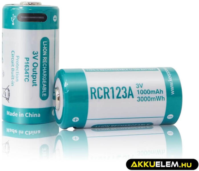 KeepPower RCR123A akkumulátor 2 db 1000mAh USB-C KeepPower