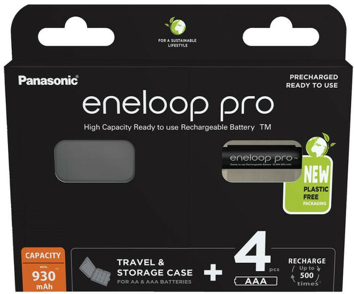 Panasonic BK-4HCDEC4BE eneloop pro Ni-MH akkumulátor + utazó és tároló tok, AAA (micro), 930 mAh, 4 db/bliszter (BK4HCDEC4BE)