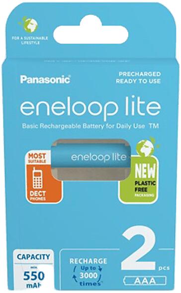 Az eneloop lite akkumulátorok ideálisak alacsony és közepes fogyasztású eszközökhöz, például Dect telefonokhoz és távirányítókhoz. Akár 3000-szer is újratölthetők, ami még gazdaságosabbá és környezetbarátabbá teszi. Az eneloop lite akár 3000-szer is újratölthető. Ez teszi a leghosszabb élettartamú akkumulátorrá. Az egyedülálló technológiai megoldás csökkenti az önkisülést. Az eneloop lite 5 év tárolás után is megőrzi töltöttségének 70%-át. Ideális Dect telefonokkal való használatra. Műanyag mentes csomagolás.