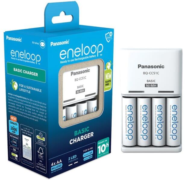 Panasonic Panasonic BQ-CC51E NiMH akkumulátortöltő és 4 db Eneloop AA (8014670)