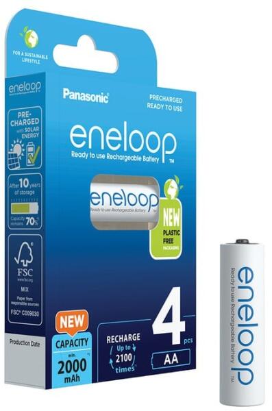 A japán Panasonic gyártó Eneloop újratölthető akkumulátora a csúcsminőségről gondoskodik, mivel több mint 2100 töltési ciklust tesz lehetővé. Az akkumulátor előre feltöltött és azonnali használatra kész minden típusú készülékben, a számítógépes egerektől, falióráktól, telefonoktól, kameráktól a különféle háztartási gépekig. Az akkumulátor kiváló tulajdonságokkal rendelkezik még alacsony hőmérsékleten is, egészen -20 C fokig, valamint nagyon alacsony önkisülési ráta jellemzi. Egy év használaton kívüli használat után kb. 90%-át, 5 év után pedig kb. 70%-át tartja meg eredeti kapacitásának. A normál Ni-MH akkumulátoroknál az akkumulátor feszültsége viszonylag gyorsan 1,1 V alá csökken használat közben, ez az a határ, amelynél a készülék már majdnem lemerültnek gondolja az akkumulátort. Az Eneloop technológiával azonban ez a görbe enyhébb, és a feszültség sem esik olyan gyorsan. Ezért valójában több képet lehet készíteni egy 2000 mAh kapacitású fényképezőgéppel és Eneloop akkumulátorral, mint egy normál, 2700 mAh kapacitású Ni-MH akkumulátorral.
