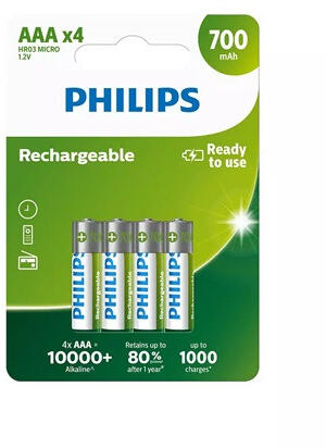Philips R03B4A70/10 Rechargeables, 700mAh, NiMH, AAA/HR03 mikro ceruza akkumulátor (4db/bliszter) (R03B4A70/10)