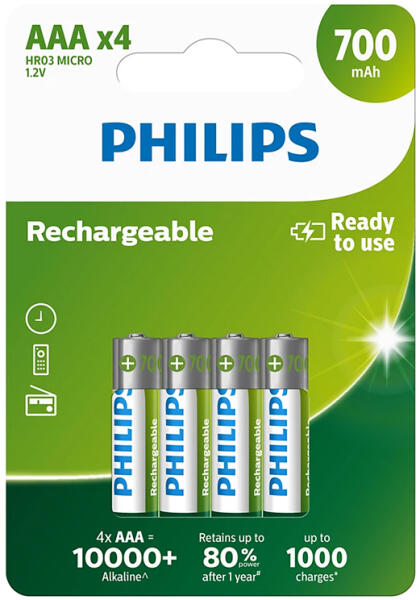 Philips Újratölthető akkumulátor AAA NiMH 700mAh, 4 db
