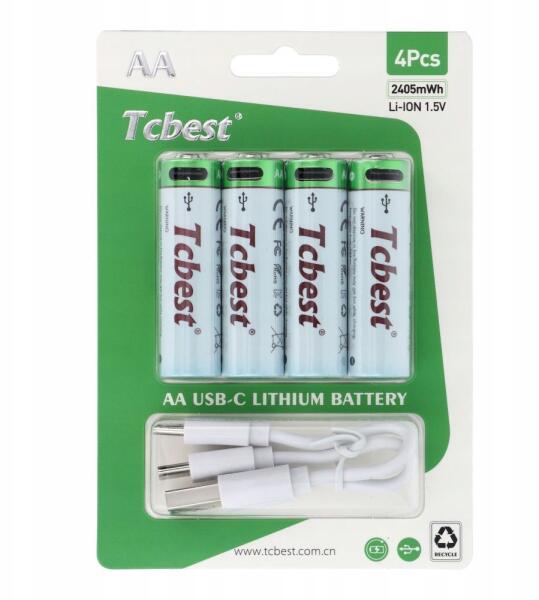 R6 (aa) 1600 mAh akkumulátor Type-C aljzattal Usb A kábel 4 x Type-C 4 db (6954457881870)
