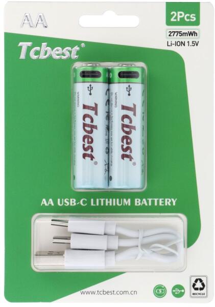A TCBEST 750 mAh kapacitású AA tölthető elemeket kínál, melyek tökéletesek számos eszközhöz, például távirányítókhoz, zseblámpákhoz, játékokhoz, hangberendezésekhez és más elektronikai eszközökhöz. A beépített USB-C port gyors és kényelmes töltést tesz lehetővé további töltők használata nélkül. Ezek az elemek hosszú élettartamot biztosítanak, és többször újratölthetők, ami környezetbarát és költséghatékony alternatívát jelent az eldobható elemekkel szemben. Az USB-A - 2 x USB-C kábel egyidejűleg mindkét elem töltését lehetővé teszi, így növelve a használati kényelmet.