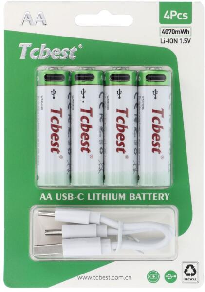 4x TCBEST AA 1100 mAh elem USB-C porttal