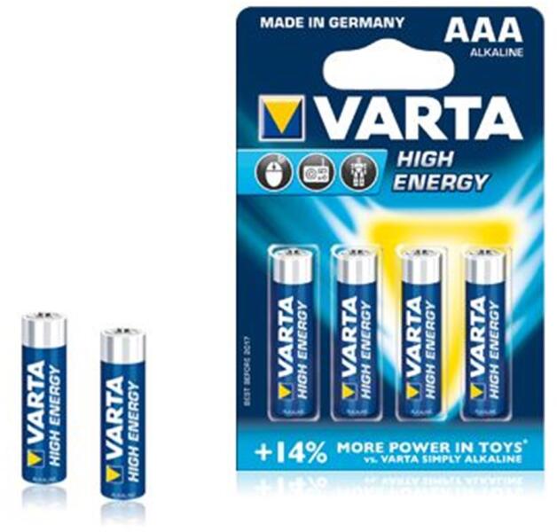 Alkáli elem VARTA LR03 HIGH ENERGY (4db) , 1,5V , 4 db-os csomagban