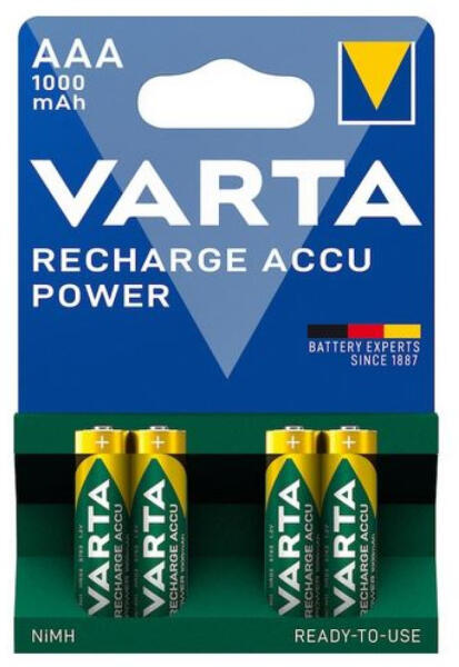 VARTA Elem tölthető akku AAA mikro 1000 mAH Power 4 db/csomag, Varta (5703301404) - cartridge