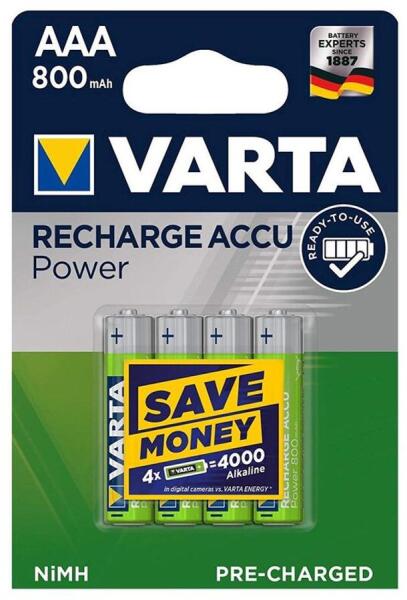 VARTA power AAA R03 Ni-MH 800mAh Ni-MH akkumulátor tölthető mikro elem 4 db (4008496550616)