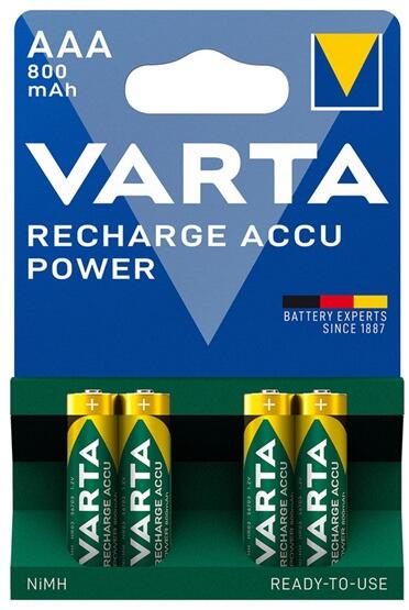 VARTA RECHARGE ACCU POWER elem AAA, újratölthető, 4db/csomag 56703101404 (56703101404)